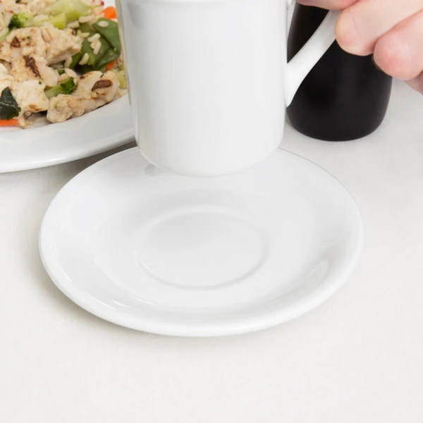 Tuxton MEE-056 Meridian 5 3/4″ Eggshell Embossed Swirl Rim China Saucer – 36/Case