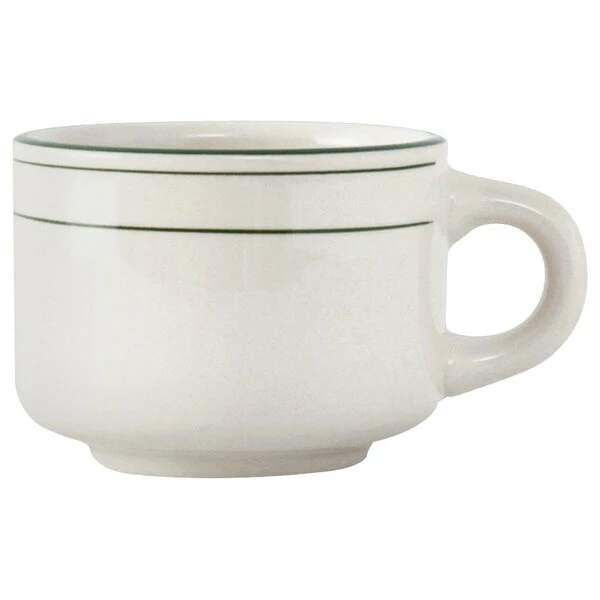 Be the first to review “Tuxton TGB-023 Green Bay 7 Oz. Eggshell China Stackable Cup / Mug With Green Bands – 36/Case” Cancel reply