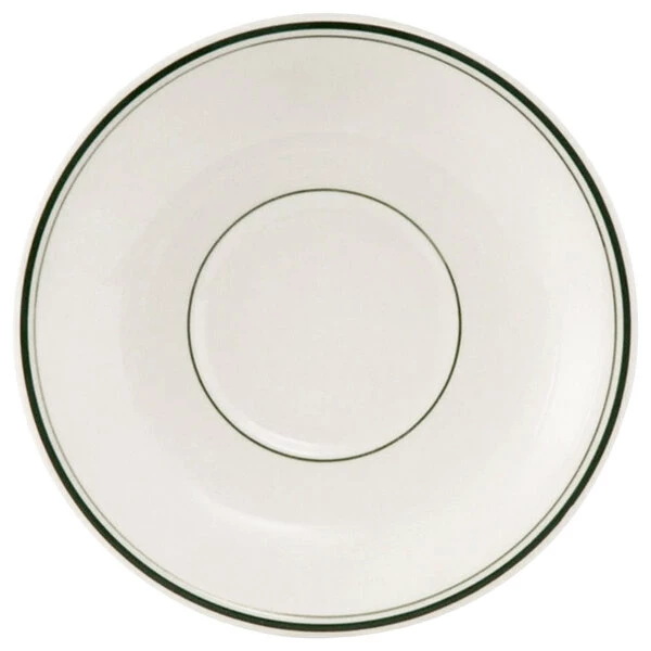 Be the first to review “Tuxton TGB-036 Green Bay 5″ Eggshell Wide Rim Rolled Edge China Demitasse Saucer With Green Bands – 36/Case” Cancel reply