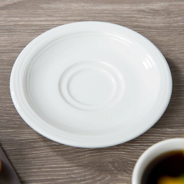 Tuxton MEE-056 Meridian 5 3/4″ Eggshell Embossed Swirl Rim China Saucer – 36/Case
